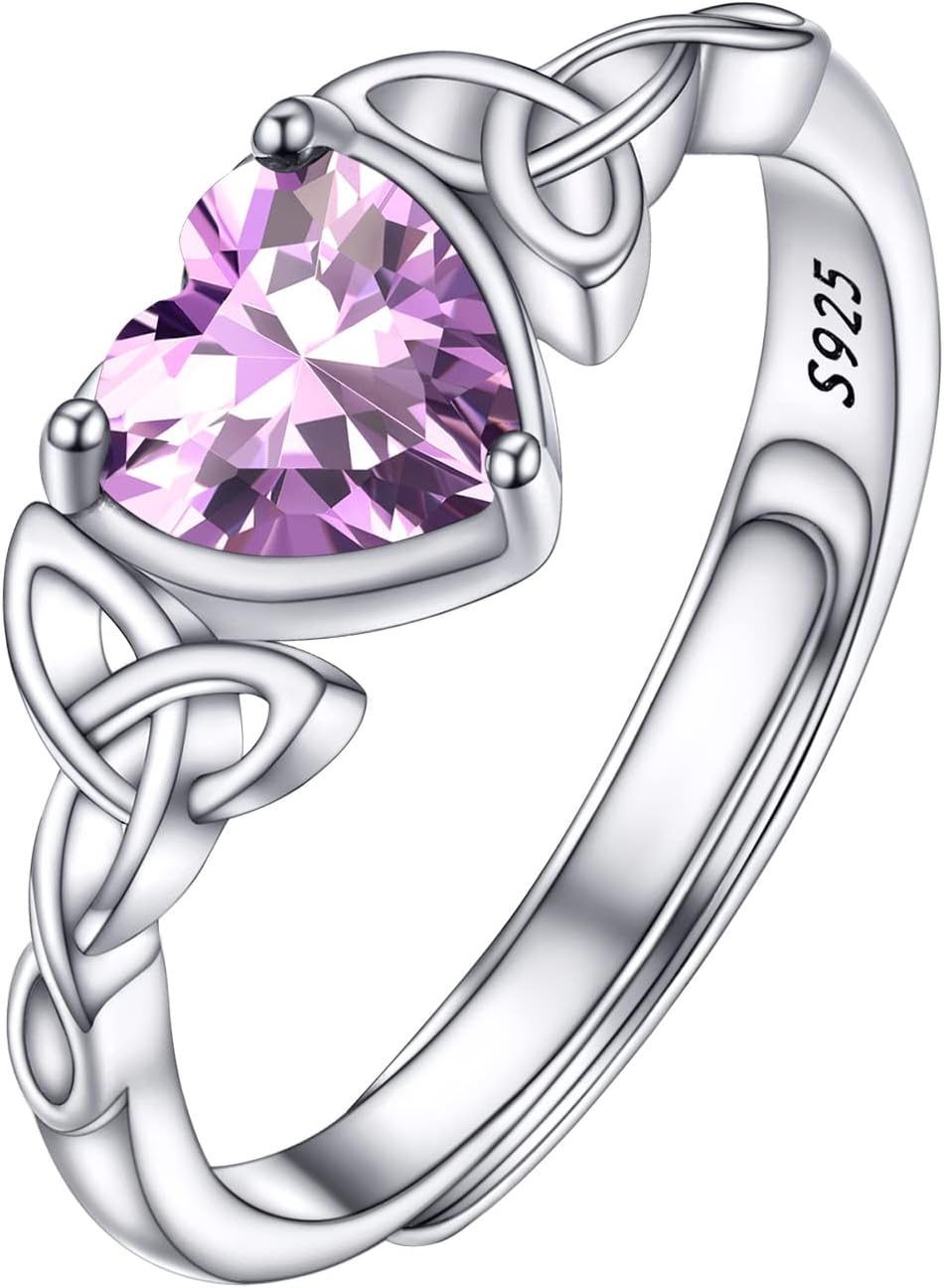 PROSILVER 925 Sterling Silver Celtic Knot Heart/Butterfly/Cute Bat Ring for Women, Birthstone Jan-Dec Available, Gorgeous Cubic Zirconia Ring, Adjustable Ring, Come with Box