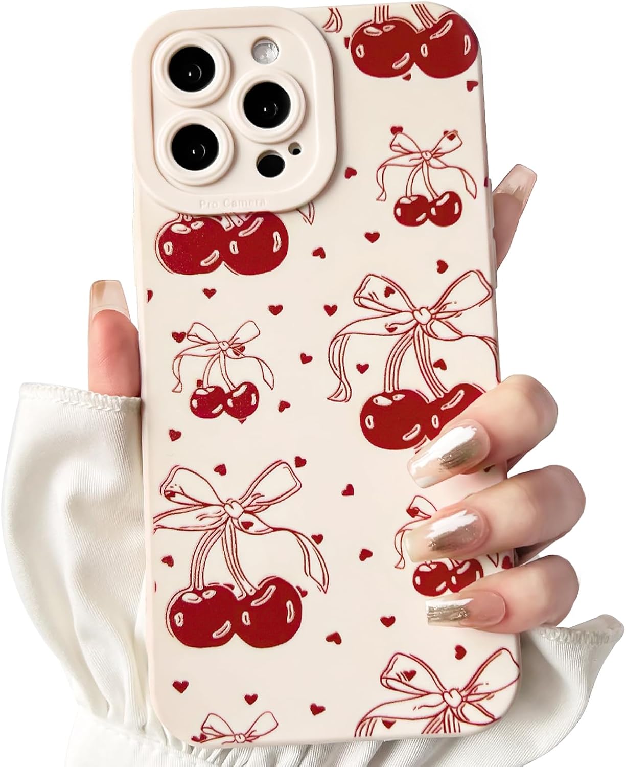 NITITOP Compatible with iPhone 12 Case Cute Cherry Bowknot Little Heart Pattern for Girls Women Soft TPU Durable Full Camera Lens Shockproof Protective Cover - White